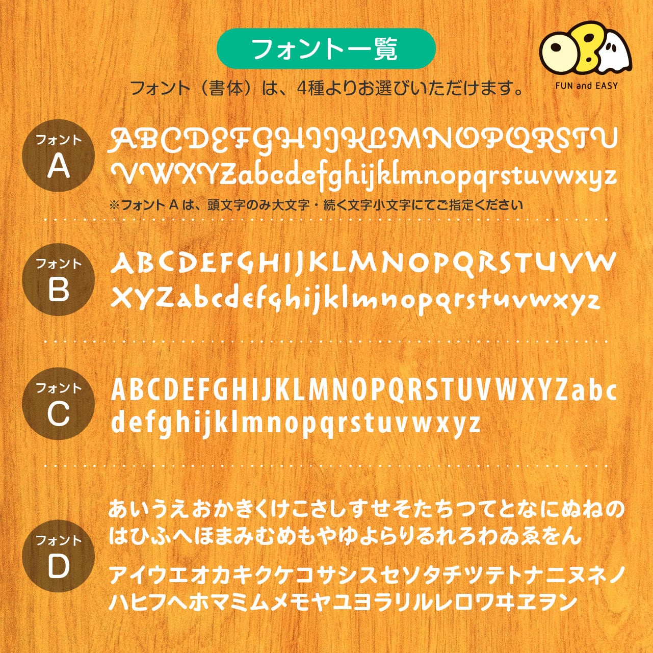 ②お好きなフォント(書体)を4種よりご選択ください。